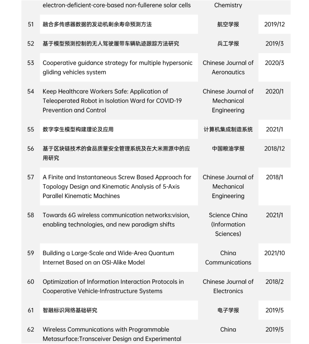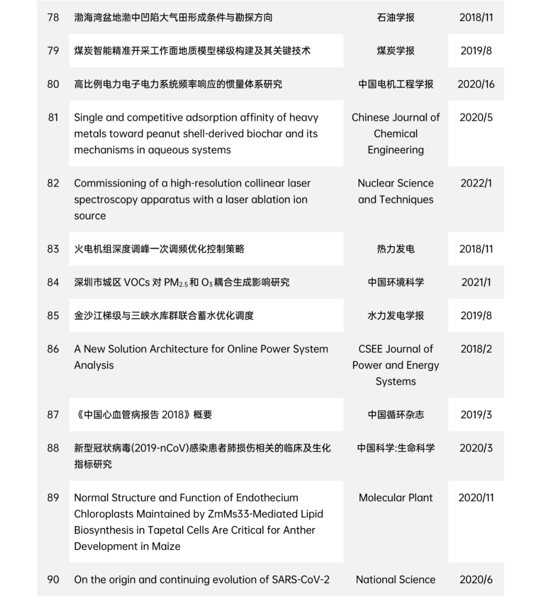 为贯彻习近平总书记关于办好世界一流学术期刊的指示精神,鼓励科技工作者多出原创性研究成果和科研精品,引导更多优秀成果在国内科技期刊首发,中国科协自2022年5月开展第七届中国科协优秀科技论文遴选计划。由10个学科集群领域(数理化与交叉学科集群、地球科学集群、预防与中医药集群、临床医学集群、农林集群、制造与材料集群、电工电子与信息技术集群、交通与基建集群、能源化工与环境集群、生命科学与基础医学集群)的专家从2018年1月以来国内中英文科技期刊发表的文章中推荐出的5000多篇论文,通过初评遴选、终评审定及社会公示,评选出95篇优秀科技论文。
