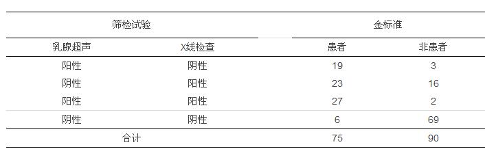 下面结合具体数字来计算一下联合试验中的灵敏度和特异度: