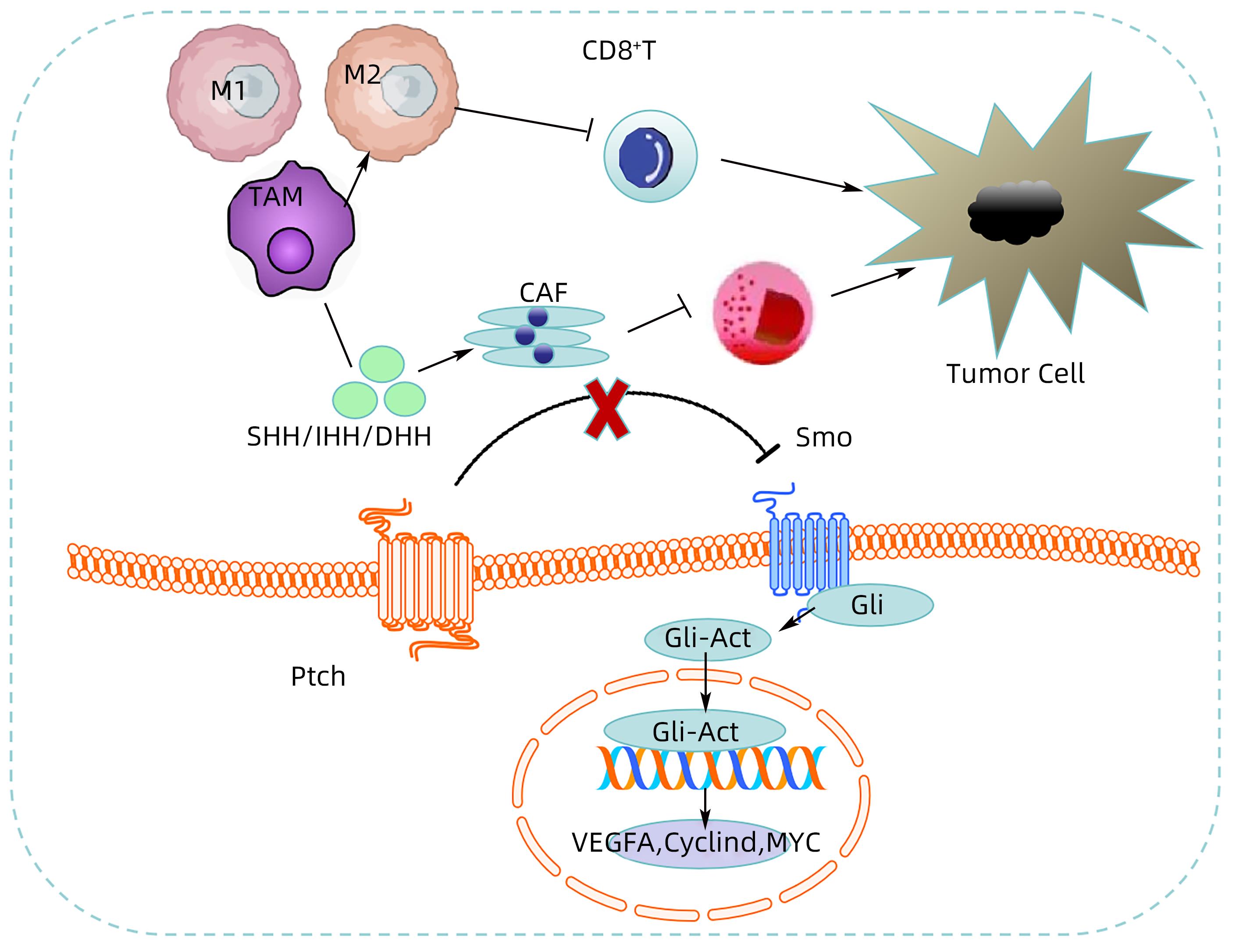 PETTY AJ, LI A, WANG XY, et al. Hedgehog signaling promotes tumor-associated macrophage polarization to suppress intratumoral CD8+ T cell recruitment[J]. J Clin Invest, 2019, 129( 12): 5151- 5162. DOI: 10.1172/JCI128644.