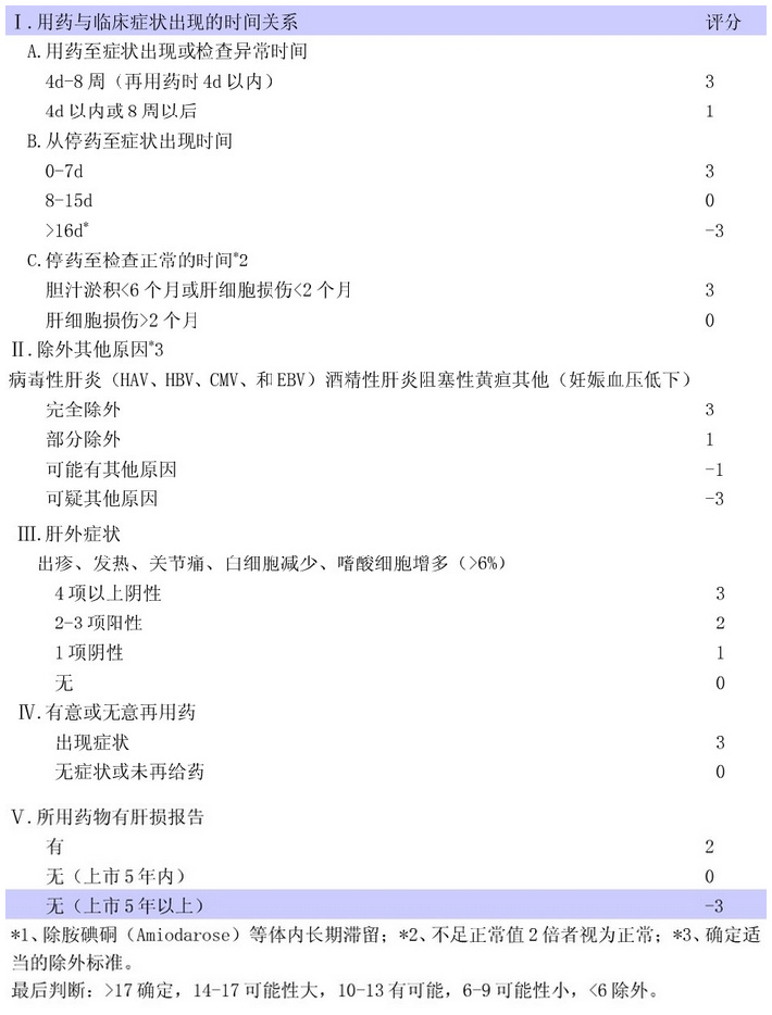 药物性肝损害的评分(诊断)标准