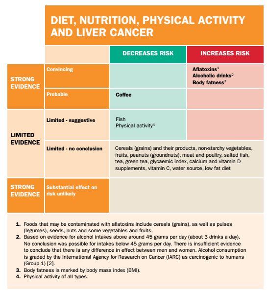 该报道更新了2007年第二次专家报告的肝癌部分,这一报告是目前科学研究中关于饮食、体重、体育活动和肝癌的一个严格的、系统的、整体分析。