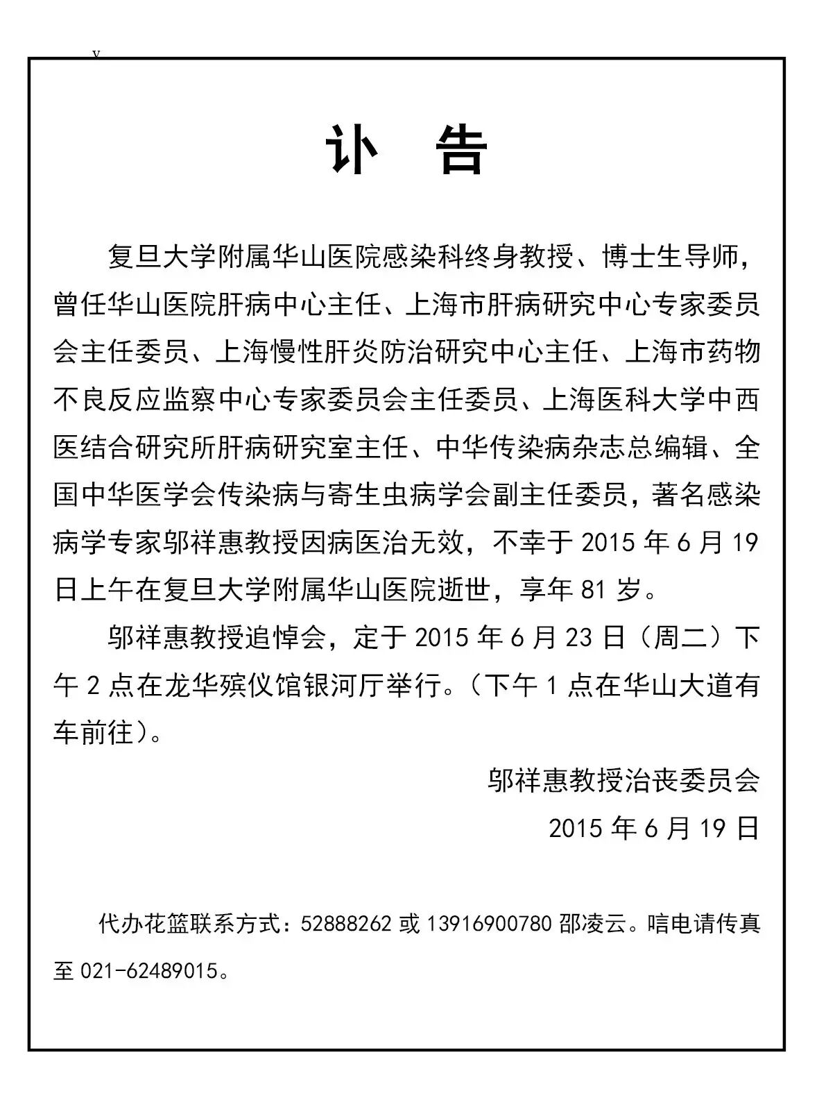 沉痛悼念著名感染病学专家——邬祥惠教授