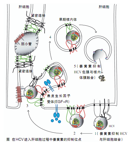 姜黄素亦可抑制HCV病毒在细胞间的传染,并且与其他抗病毒药物联用有效。